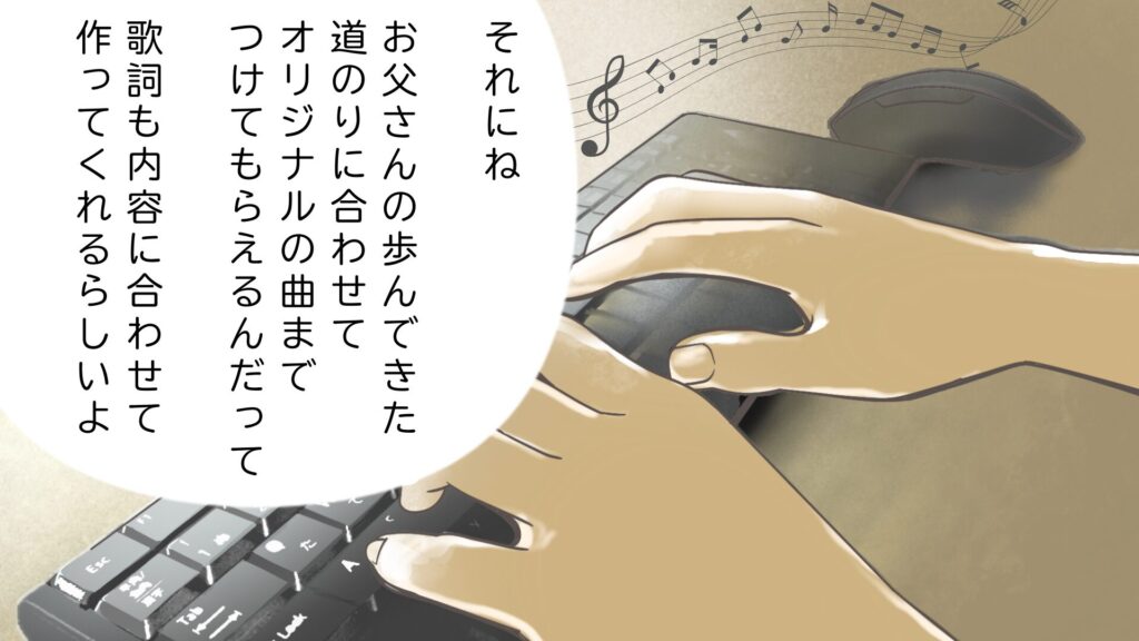 オリジナルの人生史ソング(3〜5分)を制作し、感情を込めたミュージックビデオとして仕上げます。