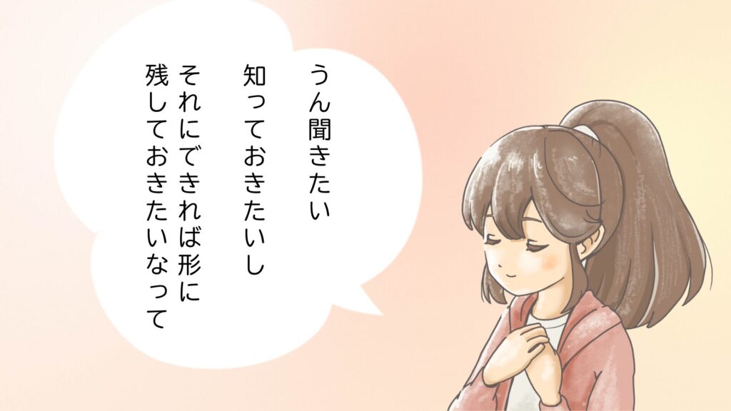 さらに文字起こしを行い、全体の流れを丁寧に構成。まるで一冊の本をまとめるように、人生を整理して映像に仕上げます。